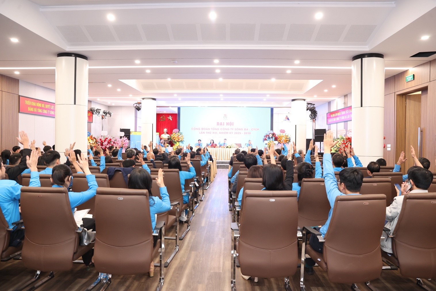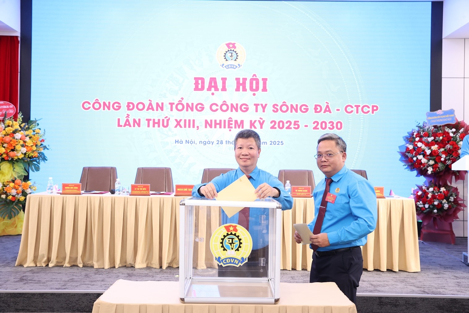 Đại hội đã bầu ra Ban Chấp hành mới khóa XII nhiệm kỳ 2025-2030 gồm 13 ủy viên và đoàn đại biểu đi dự Đại hội XIV Công đoàn ngành Xây dựng gồm 3 đại biểu chính thức và 01 đại biểu dự khuyết. Đ/c Trần Đức Tân tái đắc cử Chủ tịch Công đoàn Tổng công ty Sông Đà khoá XIII, nhiệm kỳ 2025 - 2030.