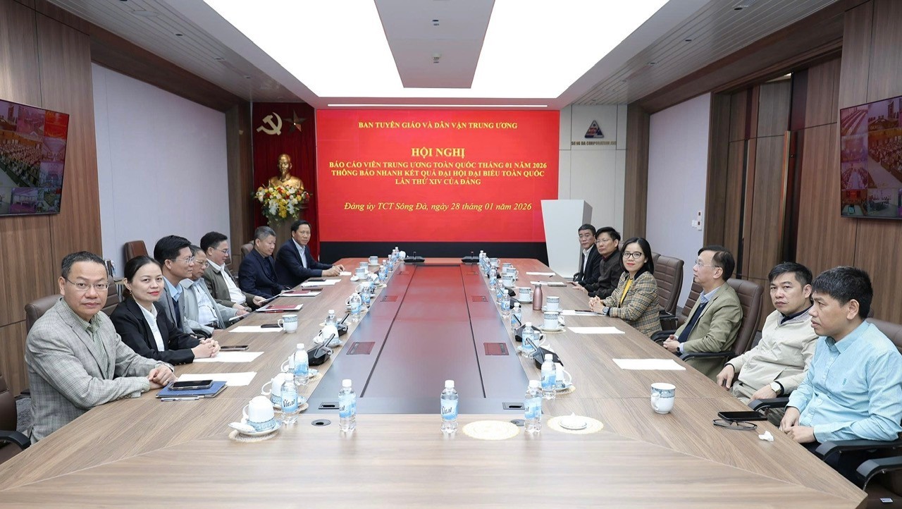 Sáng ngày 28/01/2026, Ban Tuyên giáo và Dân vận Trung ương tổ chức Hội nghị Báo cáo viên Trung ương toàn quốc tháng 01/2026 thông báo nhanh kết quả Đại hội Đại biểu toàn quốc lần thứ XIV của Đảng. Đồng chí Phạm Tất Thắng - Ủy viên Trung ương Đảng, Phó Trưởng Ban Tuyên giáo và Dân vận Trung ương chủ trì hội nghị. Đảng bộ Tổng công ty Sông Đà tham dự Hội nghị thông qua kết nối trực tuyến với Hội nghị từ điểm cầu chính của Ban Tuyên giáo và Dân vận Trung ương.