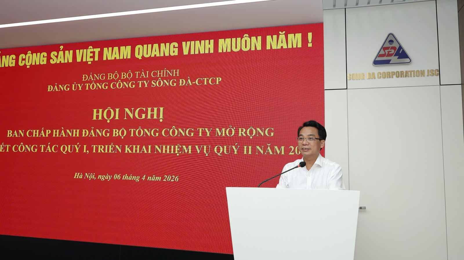 Thực hiện chương trình công tác năm 2026 của Ban Chấp hành Đảng bộ Tổng công ty Sông Đà, ngày 06/4/2026, Đảng ủy Tổng công ty đã tổ chức Hội nghị Ban Chấp hành Đảng bộ Tổng công ty mở rộng sơ kết công tác quý I, triển khai nhiệm vụ quý II năm 2026. Đồng chí Trần Văn Tuấn - Bí thư Đảng ủy, Chủ tịch Hội đồng quản trị Tổng công ty chủ trì Hội nghị.
