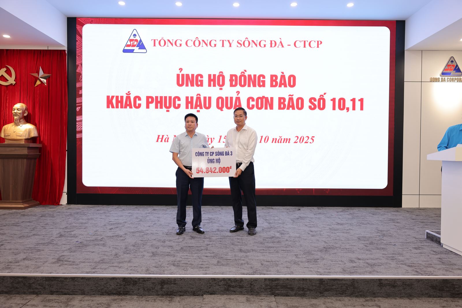 Ngày 15/10/2025, tại trụ sở Tổng công ty Sông Đà – số 493 Nguyễn Trãi, Thanh Liệt, Hà Nội, Tổng công ty đã tổ chức chương trình ủng hộ đồng bào các tỉnh miền Trung, miền Bắc bị ảnh hưởng nặng nề bởi cơn bão số 10 và số 11 nhằm góp phần chia sẻ khó khăn, hỗ trợ người dân khắc phục hậu quả thiên tai, sớm ổn định cuộc sống.