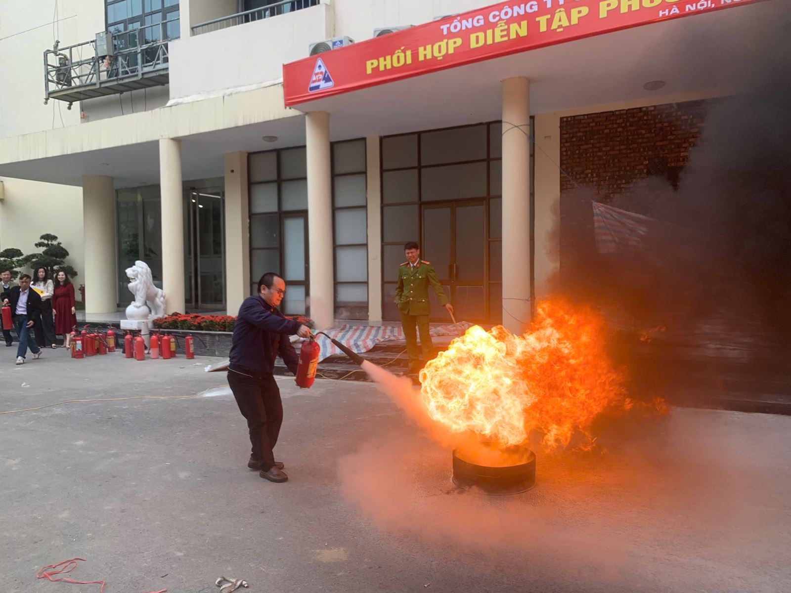 Tham dự chương trình có đại diện lãnh đạo Tổng công ty Sông Đà; cán bộ, nhân viên các ban chức năng Tổng công ty; cùng các cán bộ, chiến sĩ Phòng Cảnh sát PCCC&CNCH – Công an TP Hà Nội trực tiếp giảng dạy và hướng dẫn.