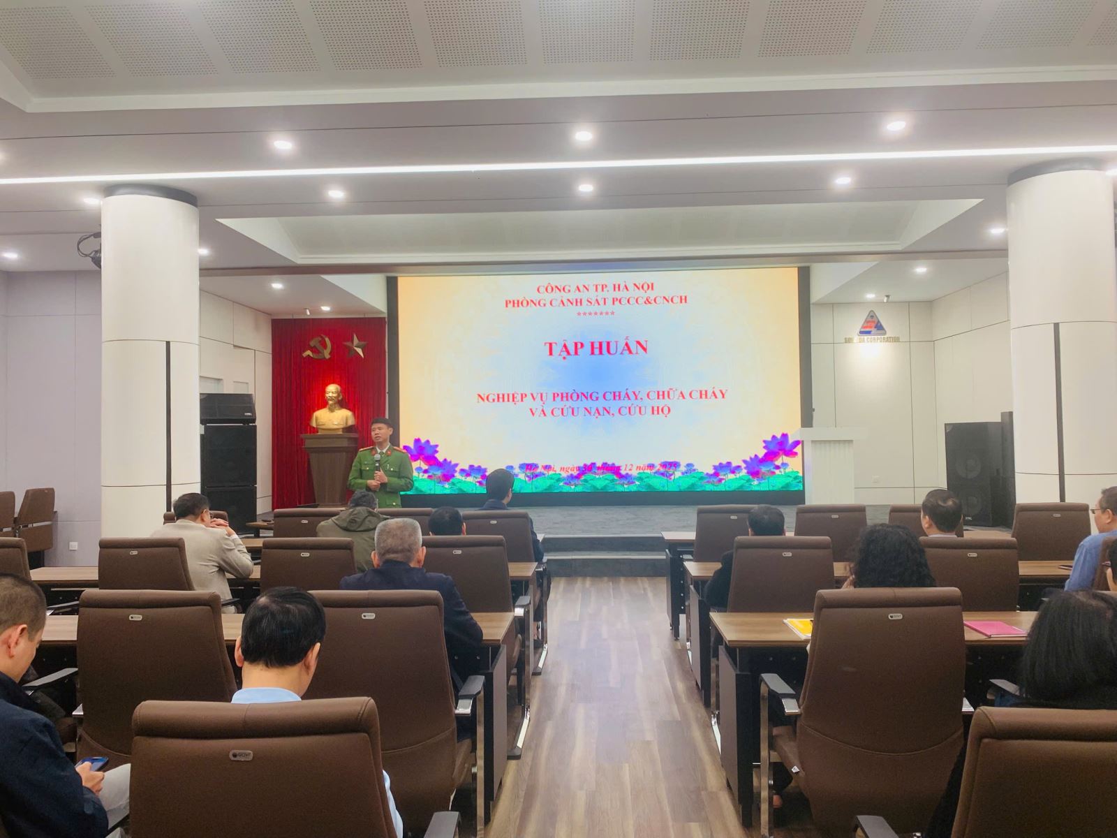 Ngày 30/12/2025, tại trụ sở Tổng công ty Sông Đà (số 493 Nguyễn Trãi, Thanh Liệt, Hà Nội), Tổng công ty Sông Đà đã phối hợp với Phòng Cảnh sát Phòng cháy, chữa cháy và Cứu nạn, cứu hộ (PCCC&CNCH) – Công an TP Hà Nội tổ chức chương trình tập huấn nghiệp vụ phòng cháy, chữa cháy và cứu nạn, cứu hộ cho cán bộ, người lao động trong toàn Tổng công ty.