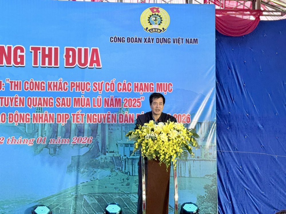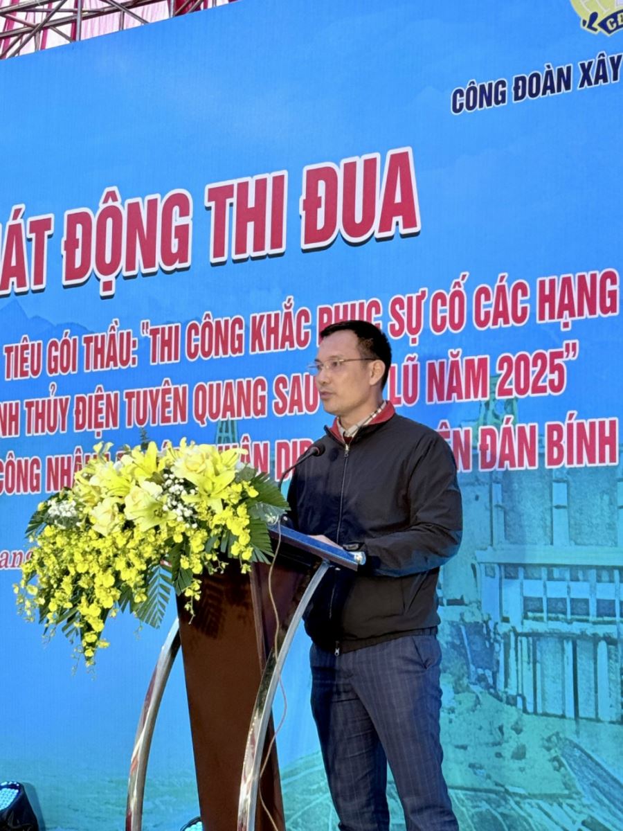 Phát biểu tại buổi lễ Chiến dịch thi đua “115 ngày đêm hoàn thành mục tiêu gói thầu thi công khắc phục sự cố hạ lưu Công trình Thủy điện Tuyên Quang sau mùa lũ năm 2025” ông Phạm Hoài Phương - Ủy viên BCH Tổng Liên đoàn lao động Việt Nam, Chủ tịch Công đoàn xây dựng Việt Nam đánh giá cao sự chủ động của Công đoàn Tổng công ty Sông Đà trong việc phát động phong trào thi đua gắn với nhiệm vụ sản xuất - kinh doanh. Đồng thời đề nghị các cấp công đoàn tiếp tục đẩy mạnh phong trào lao động giỏi, lao động sáng tạo; chăm lo tốt hơn đời sống vật chất, tinh thần cho người lao động; đặc biệt coi trọng công tác an toàn, vệ sinh lao động và kịp thời tuyên dương các tập thể, cá nhân điển hình tiên tiến.