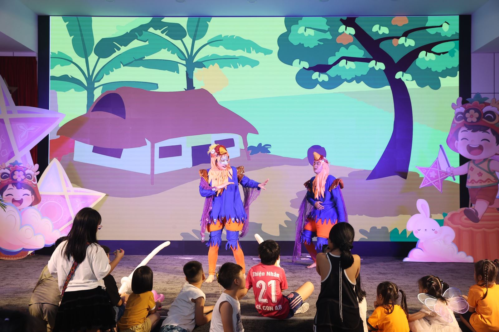 “Đêm hội trăng rằm 2025” mang đến không khí vui tươi, rộn ràng với nhiều tiết mục nghệ thuật đặc sắc do các nghệ sỹ Nhà hát Tuổi trẻ biểu diễn, cùng các trò chơi dân gian, hoạt cảnh chú Cuội – chị Hằng, xiếc ảo thuật, đố vui có thưởng và phần phá cỗ trông trăng. Những tiếng cười giòn giã và ánh mắt hồn nhiên của các em đã làm nên một đêm Trung thu thật trọn vẹn và ý nghĩa.