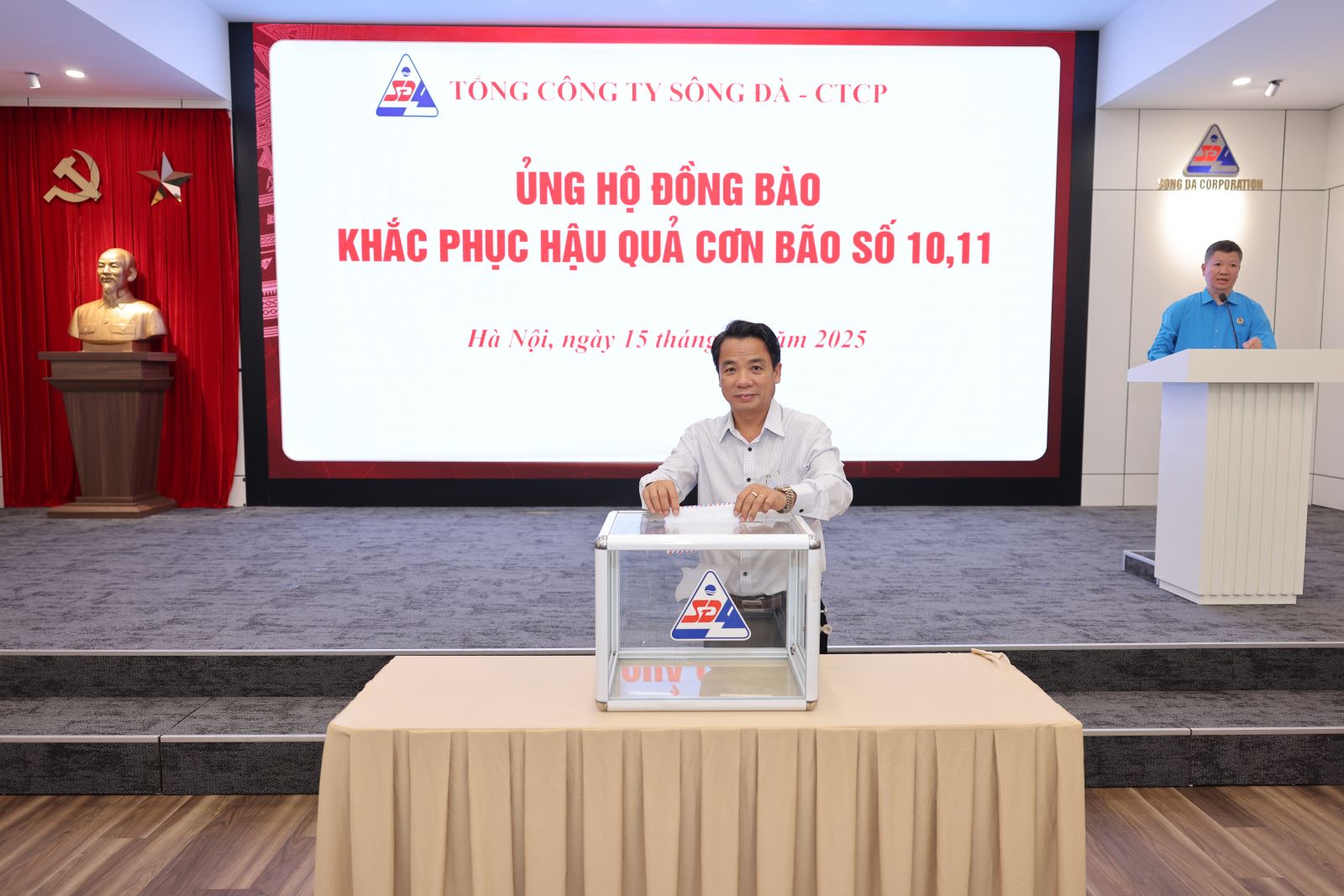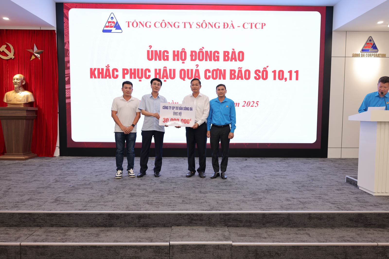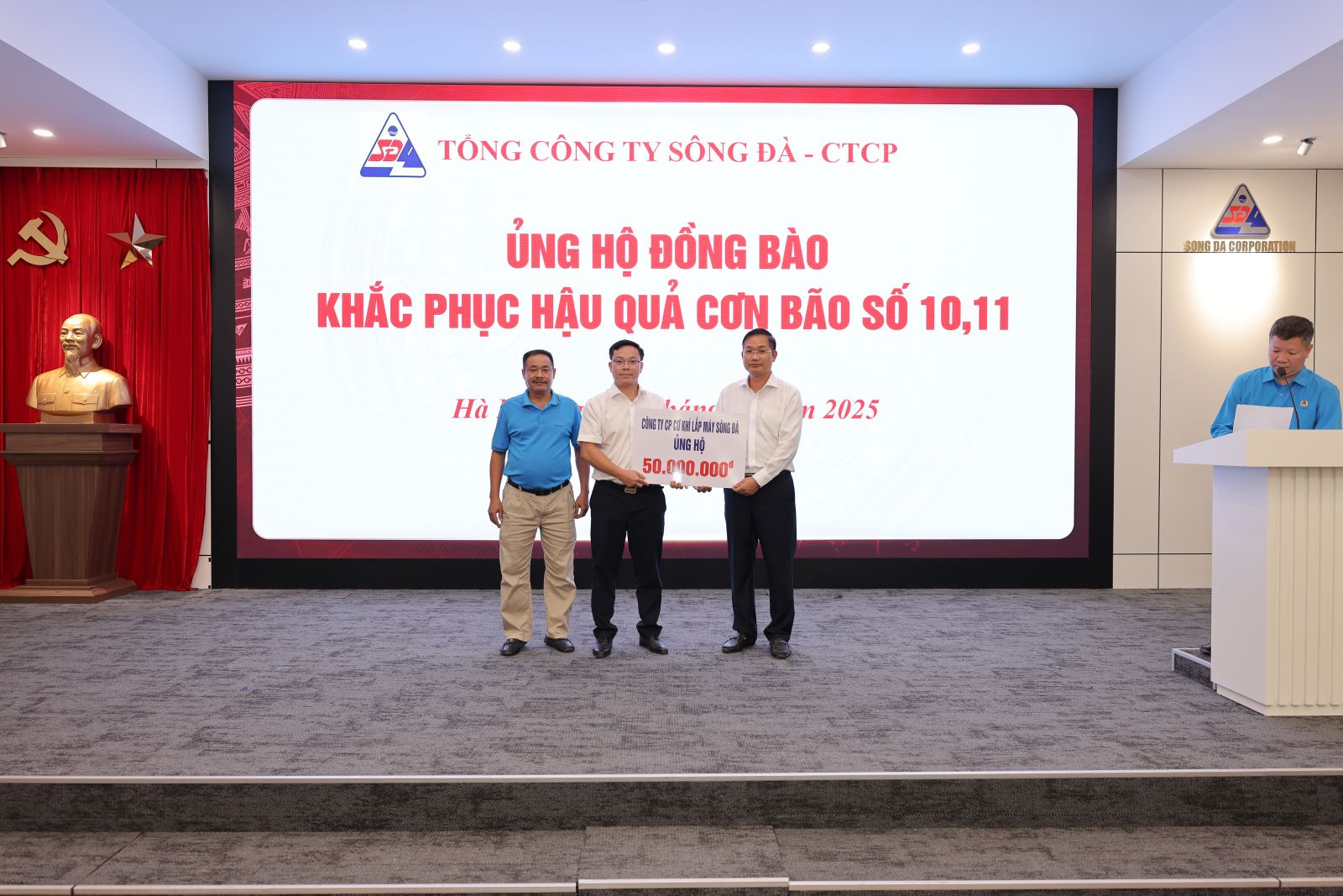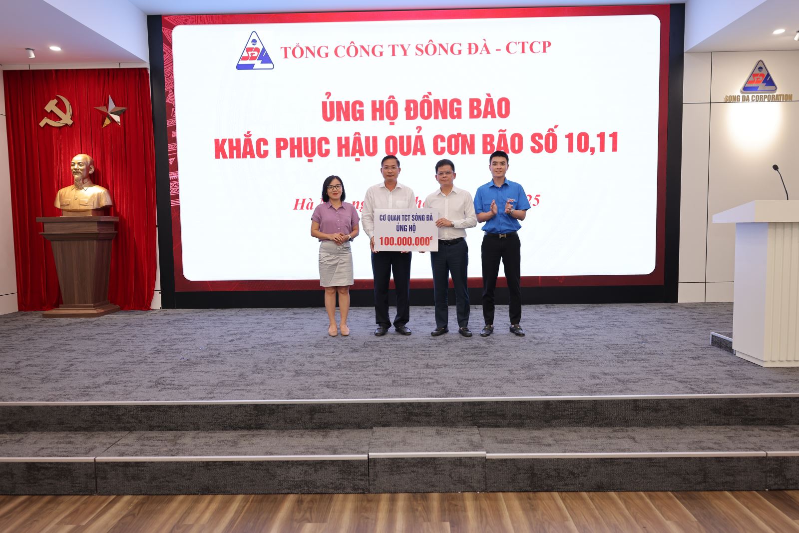 Ngày 15/10/2025, tại trụ sở Tổng công ty Sông Đà – số 493 Nguyễn Trãi, Thanh Liệt, Hà Nội, Tổng công ty đã tổ chức chương trình ủng hộ đồng bào các tỉnh miền Trung, miền Bắc bị ảnh hưởng nặng nề bởi cơn bão số 10 và số 11 nhằm góp phần chia sẻ khó khăn, hỗ trợ người dân khắc phục hậu quả thiên tai, sớm ổn định cuộc sống.