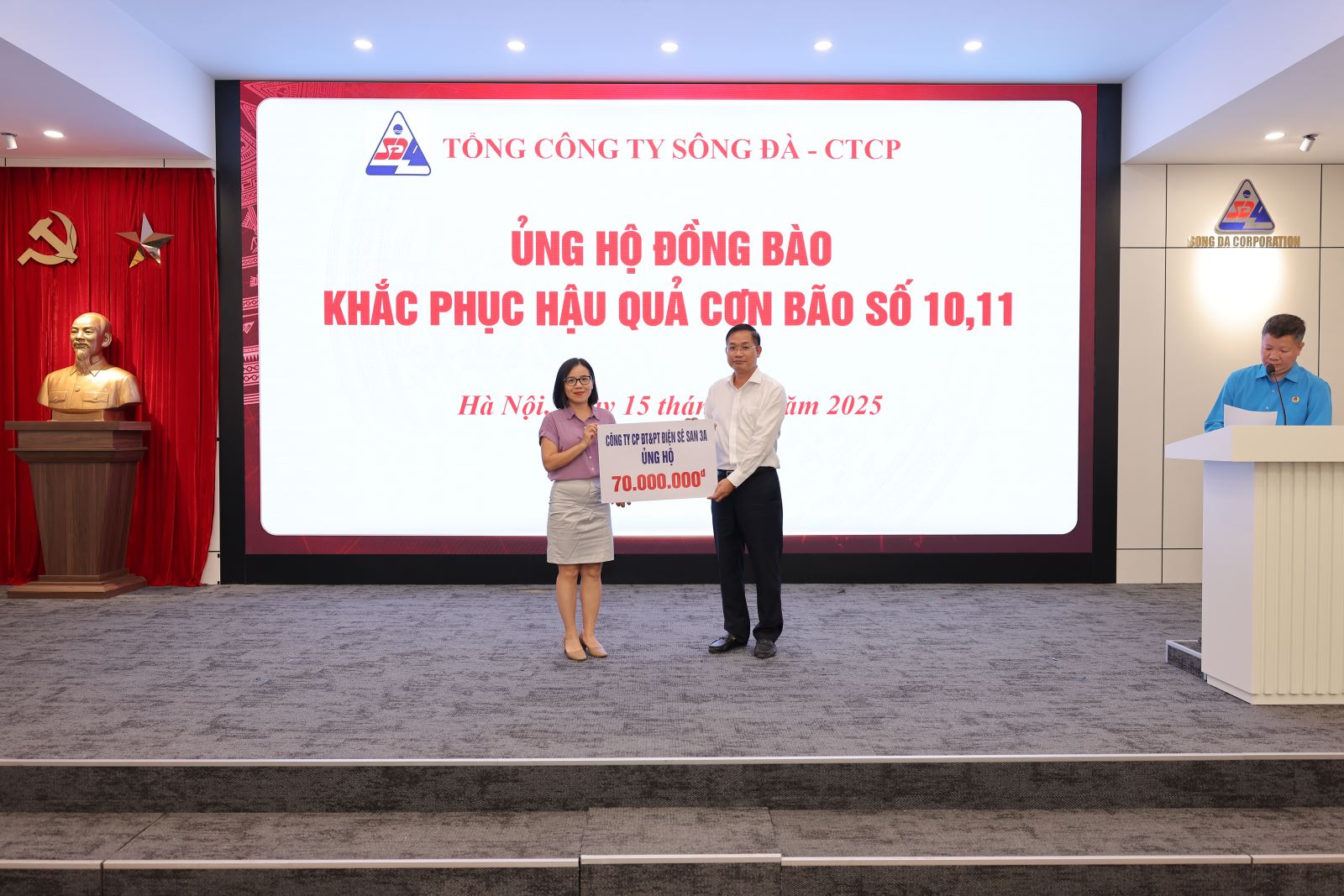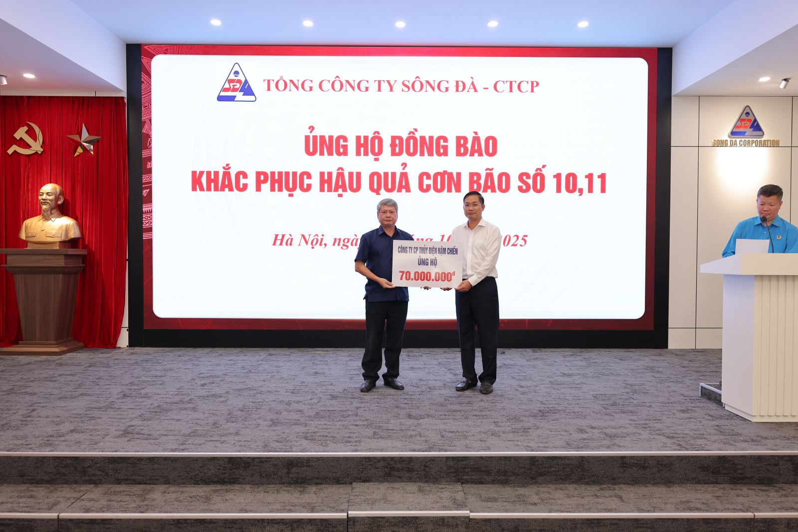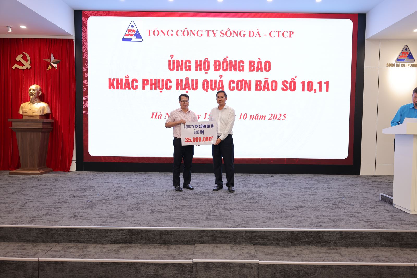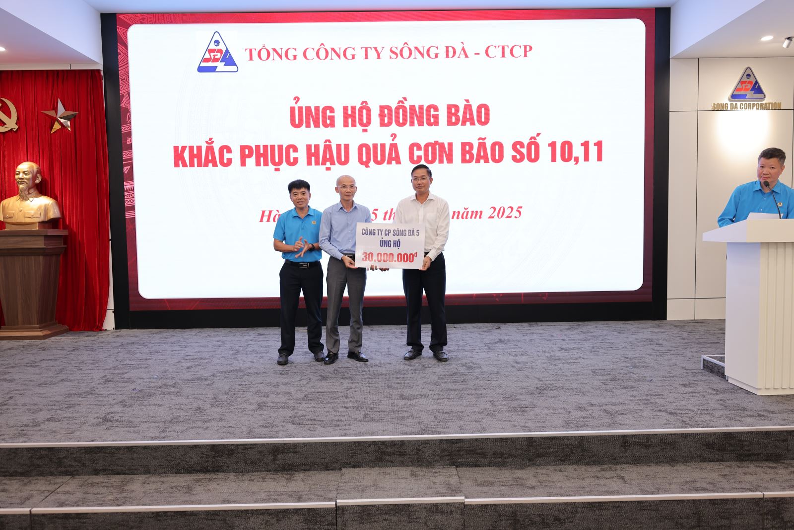 Ngày 15/10/2025, tại trụ sở Tổng công ty Sông Đà – số 493 Nguyễn Trãi, Thanh Liệt, Hà Nội, Tổng công ty đã tổ chức chương trình ủng hộ đồng bào các tỉnh miền Trung, miền Bắc bị ảnh hưởng nặng nề bởi cơn bão số 10 và số 11 nhằm góp phần chia sẻ khó khăn, hỗ trợ người dân khắc phục hậu quả thiên tai, sớm ổn định cuộc sống.