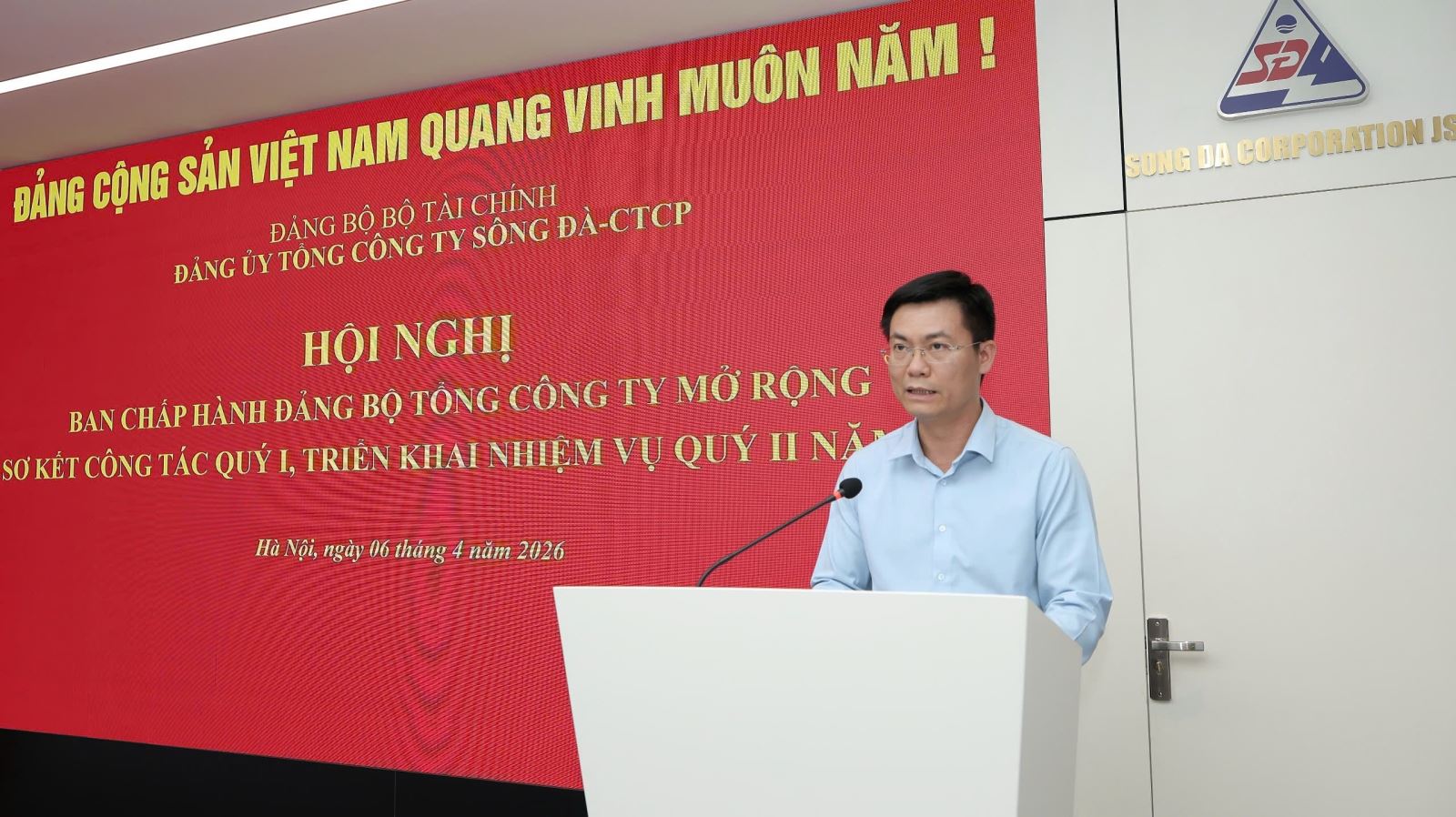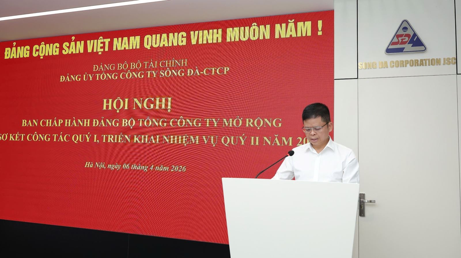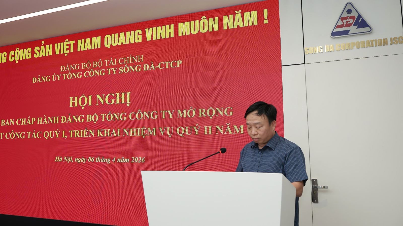 Thực hiện chương trình công tác năm 2026 của Ban Chấp hành Đảng bộ Tổng công ty Sông Đà, ngày 06/4/2026, Đảng ủy Tổng công ty đã tổ chức Hội nghị Ban Chấp hành Đảng bộ Tổng công ty mở rộng sơ kết công tác quý I, triển khai nhiệm vụ quý II năm 2026. Đồng chí Trần Văn Tuấn - Bí thư Đảng ủy, Chủ tịch Hội đồng quản trị Tổng công ty chủ trì Hội nghị.
