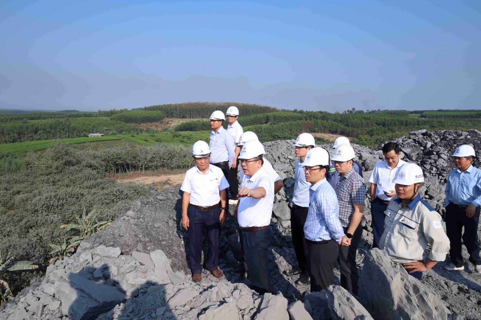 Dự án Nhà máy Thủy điện Trị An mở rộng sau khi hoàn thành sẽ giúp tăng khả năng huy động công suất cho phụ tải khu vực miền Nam, giảm chi phí sản xuất của hệ thống điện quốc gia, tận dụng tối đa khả năng của dòng chảy thông qua việc hạn chế lượng xả thừa hằng năm, giảm phát thải CO2, kéo dài tuổi thọ thiết bị của Nhà máy Thủy điện Trị An hiện hữu. Trong ảnh: Phó Tổng giám đốc EVN Phạm Hồng Phương cùng đoàn công tác nghe đại diện đơn vị thi công báo cáo tiến độ đào hố móng nhà máy.