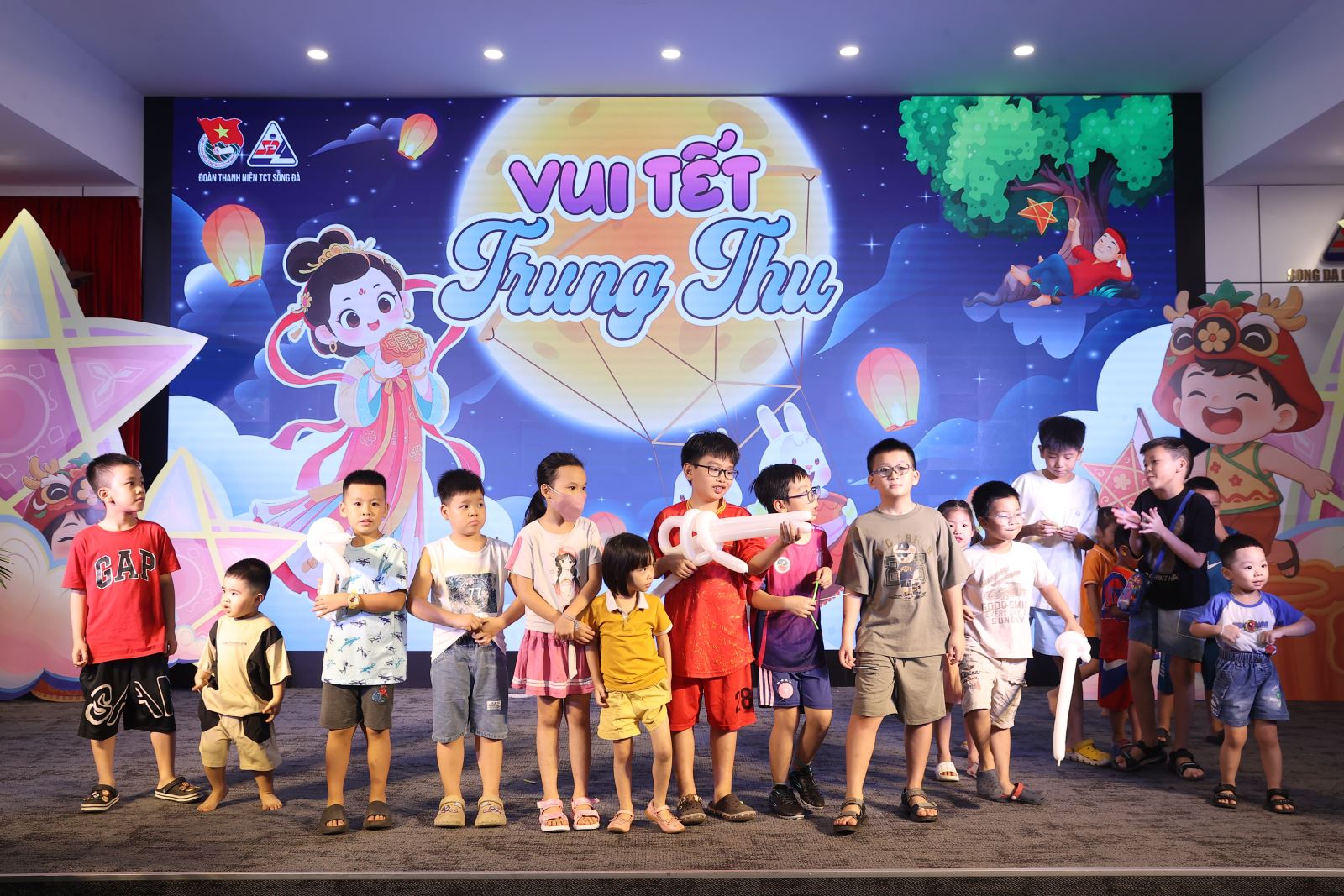 Tối ngày 03/10/2025, tại trụ sở Tổng công ty Sông Đà – số 493 Nguyễn Trãi, Thanh Liệt, Hà Nội, Đoàn Thanh niên Tổng công ty Sông Đà đã phối hợp cùng các nghệ sỹ Nhà hát Tuổi trẻ tổ chức chương trình “Đêm hội trăng rằm 2025” dành cho các cháu thiếu nhi là con cán bộ, công nhân viên Tổng công ty.